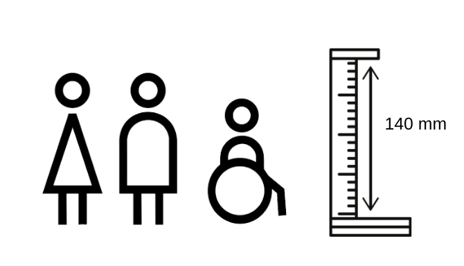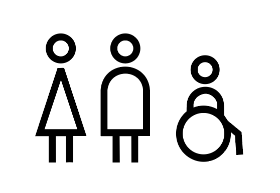 Männlich / Weiblich / Behinderte Badezimmer Schild - aus 3 mm Acryl, selbstklebend