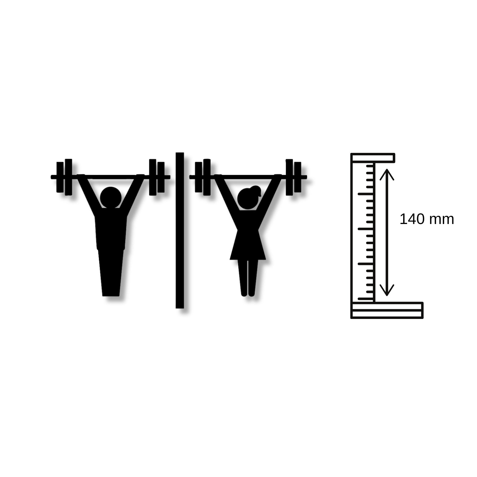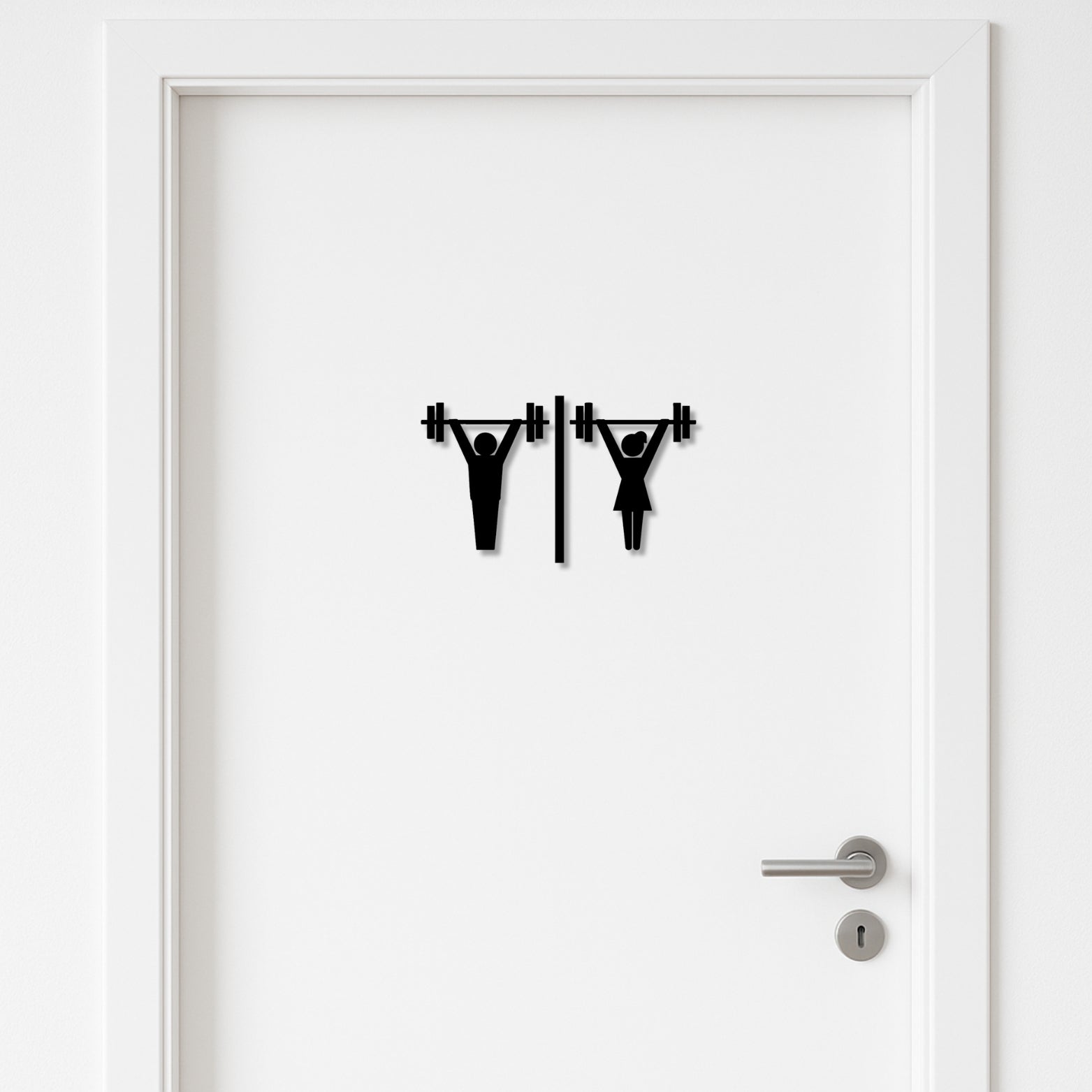 Männliches und weibliches Fitnessstudio Badezimmerschild - aus 3 mm Acryl, selbstklebend